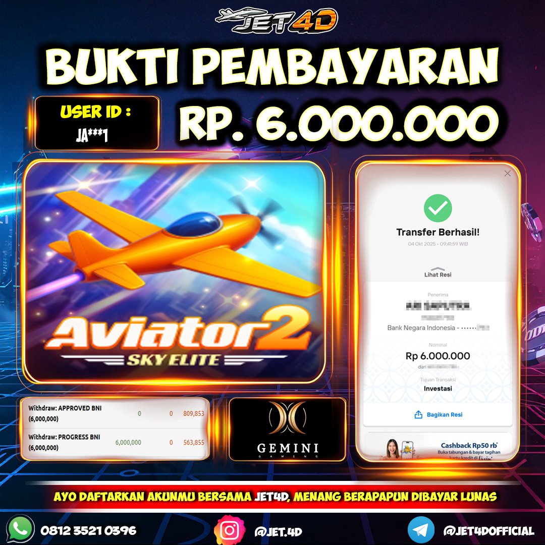 JET4D RAHASIA MENANG DI AVIATOR 2 Selamat Kepada Member Setia Atas Withdraw Rp 6.000.000 Hari ini. List member yang sebelumnya mendapatkan withdraw besar bisa cek Disini dan di LINK ini.pelanyanan