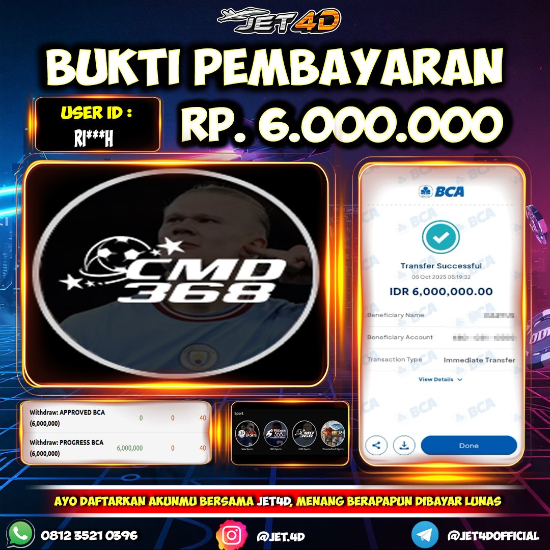 JET4D TEMPAT BETTING BOLA TERPERCAYA Selamat Kepada Member Setia Atas Withdraw Rp 6.000.000 Hari ini. List member yang sebelumnya mendapatkan withdraw besar bisa cek Disini dan di LINK ini.pelanyanan nonstop