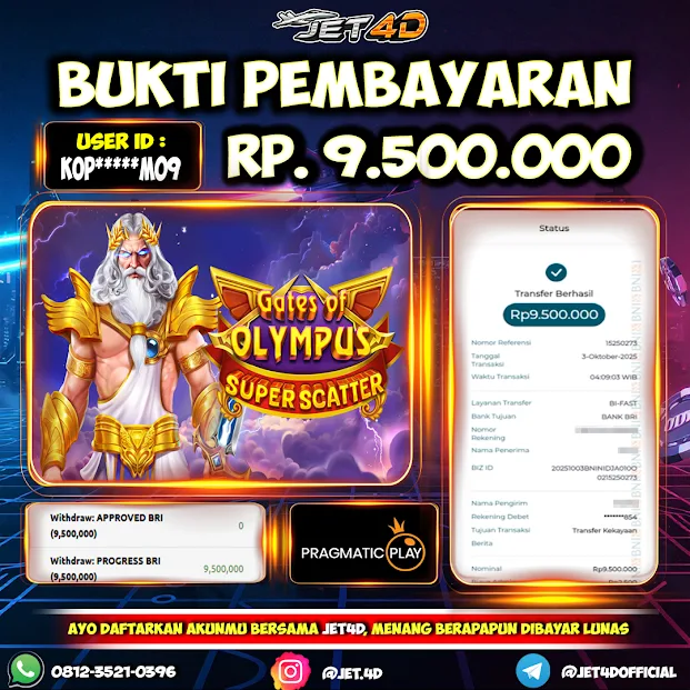 JET4D NIKMATI SUPER SCATTER GATES OF OLYMPUS Selamat Kepada Member Setia Atas Withdraw Rp 9.500.000 Hari ini. List member yang sebelumnya mendapatkan withdraw besar bisa cek Disini dan