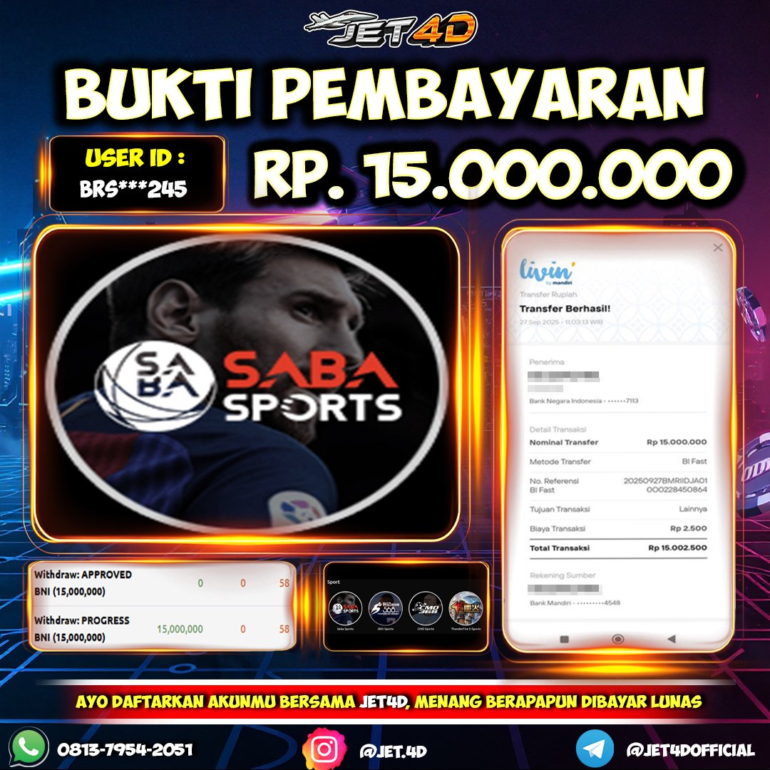 JET4D PECAH SELAYAR PASTI DIBAYAR Selamat Kepada Member Setia Atas Withdraw Rp 40.000.000 Hari ini. List member yang sebelumnya mendapatkan withdraw besar bisa cek Disini dan di LINK ini.pelanyanan nonstop