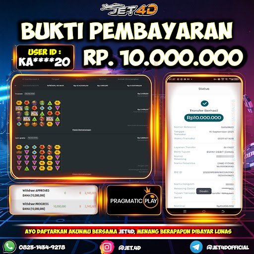 JET4D DENGAN MODAL GOCENG PASTI BAWA HASIL Selamat Kepada Member Setia Atas Withdraw Rp 10.000.000 Hari ini. List member yang sebelumnya mendapatkan withdraw besar bisa cek Disini dan