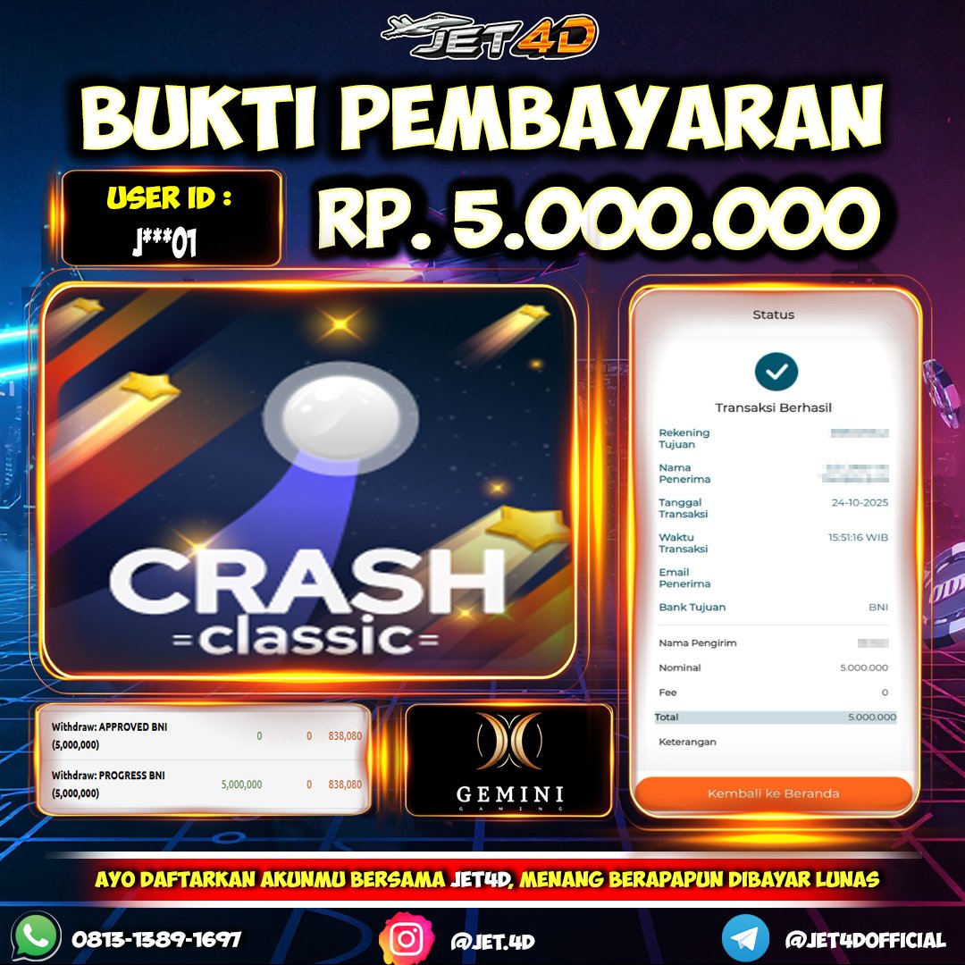 JET4D TERBANGKAN TARUHANMU SEBELUM MELEDAK Selamat Kepada Member Setia Atas Withdraw Rp 5.000.000 Hari ini. List member yang sebelumnya mendapatkan withdraw besar bisa cek Disini dan di LINK ini.pelanyanan nonstop