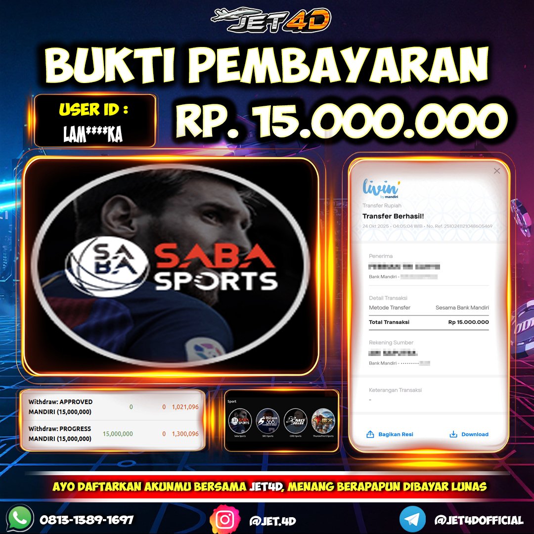 JET4D EVENT MIX PARLAY🔥Raih Kemenangan Berlipat Ganda Hanya Dengan 1 Tiket Parlay. Main Lebih Seru, Untung Lebih Besar! Selamat Kepada Member Setia Atas Withdraw Rp 15.000.000