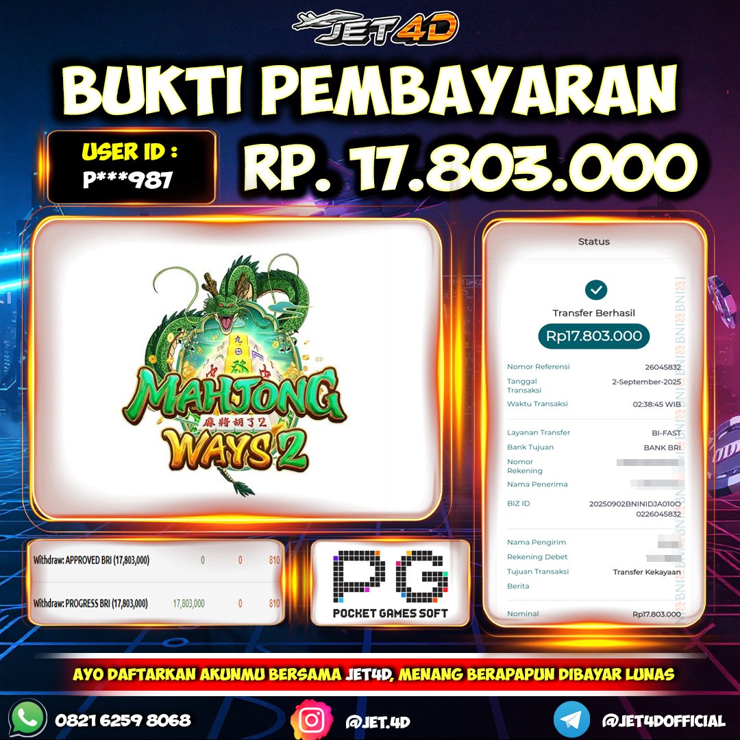 JET4D HUJAN PETIR AUTO WD Selamat Kepada Member Setia Atas Withdraw Rp 10.000.000 Hari ini. List member yang sebelumnya mendapatkan withdraw besar bisa cek Disini dan di LINK ini.pelanyanan nonstop