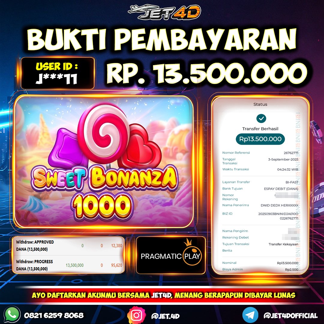 JET4D SWEET BONANZA MAXWIN Selamat Kepada Member Setia Atas Withdraw Rp 111.990.614 Hari ini. List member yang sebelumnya mendapatkan withdraw besar bisa cek Disini dan di LINK ini.pelanyanan nonstop dan