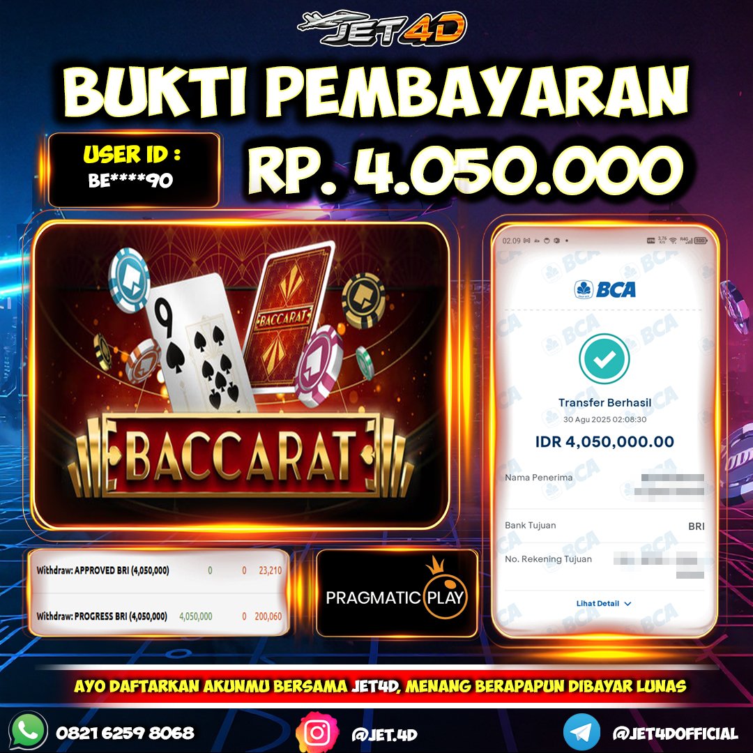 JET4D LIVE CASINO TERBESAR 2025 Selamat Kepada Member Setia Atas Withdraw Rp 4.050.000 Hari ini. List member yang sebelumnya mendapatkan withdraw besar bisa cek Disini dan di LINK ini.pelanyanan nonstop