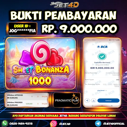 JET4D BERMAIN DENGAN POLA TERBARU PASTI JACKPOT Selamat Kepada Member Setia Atas Withdraw Rp 43.000.000 Hari ini. List member yang sebelumnya mendapatkan withdraw besar bisa cek Disini dan