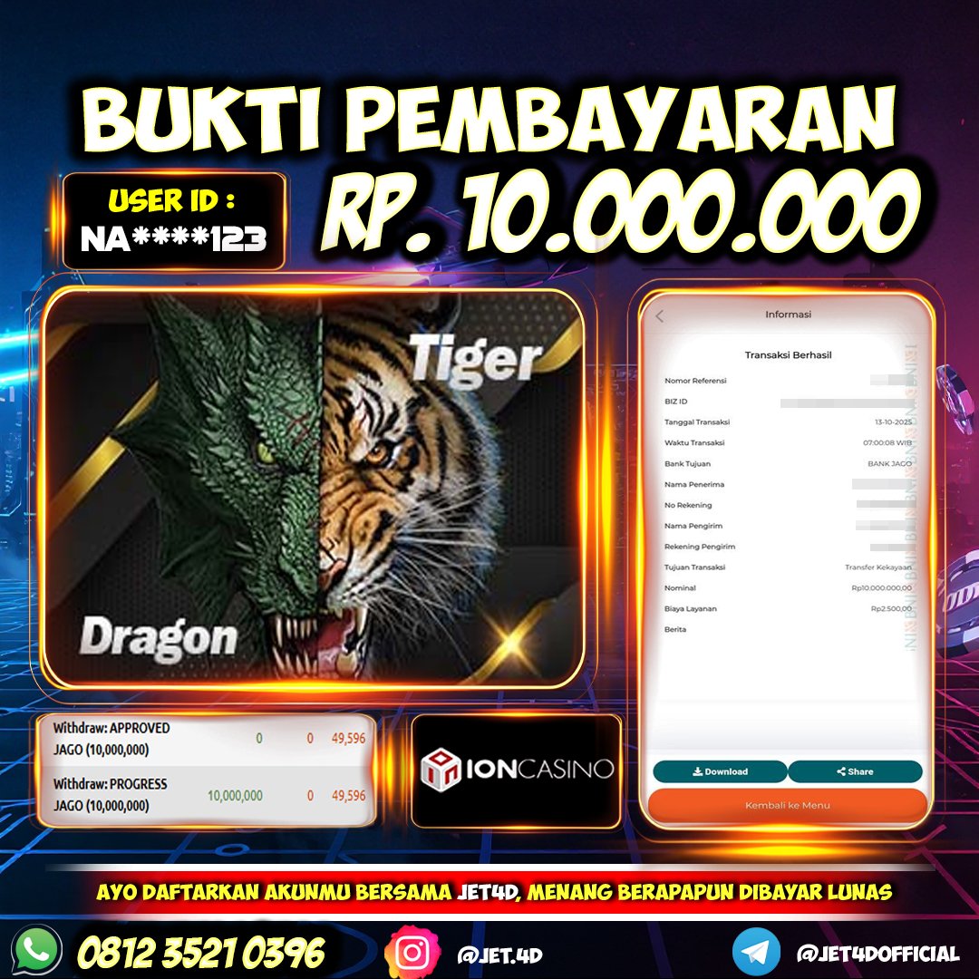 JET4D TARUHAN SERU DI ION CASINO Selamat Kepada Member Setia Atas Withdraw Rp 10.000.000 Hari ini. List member yang sebelumnya mendapatkan withdraw besar bisa cek Disini dan di LINK ini.pelanyanan