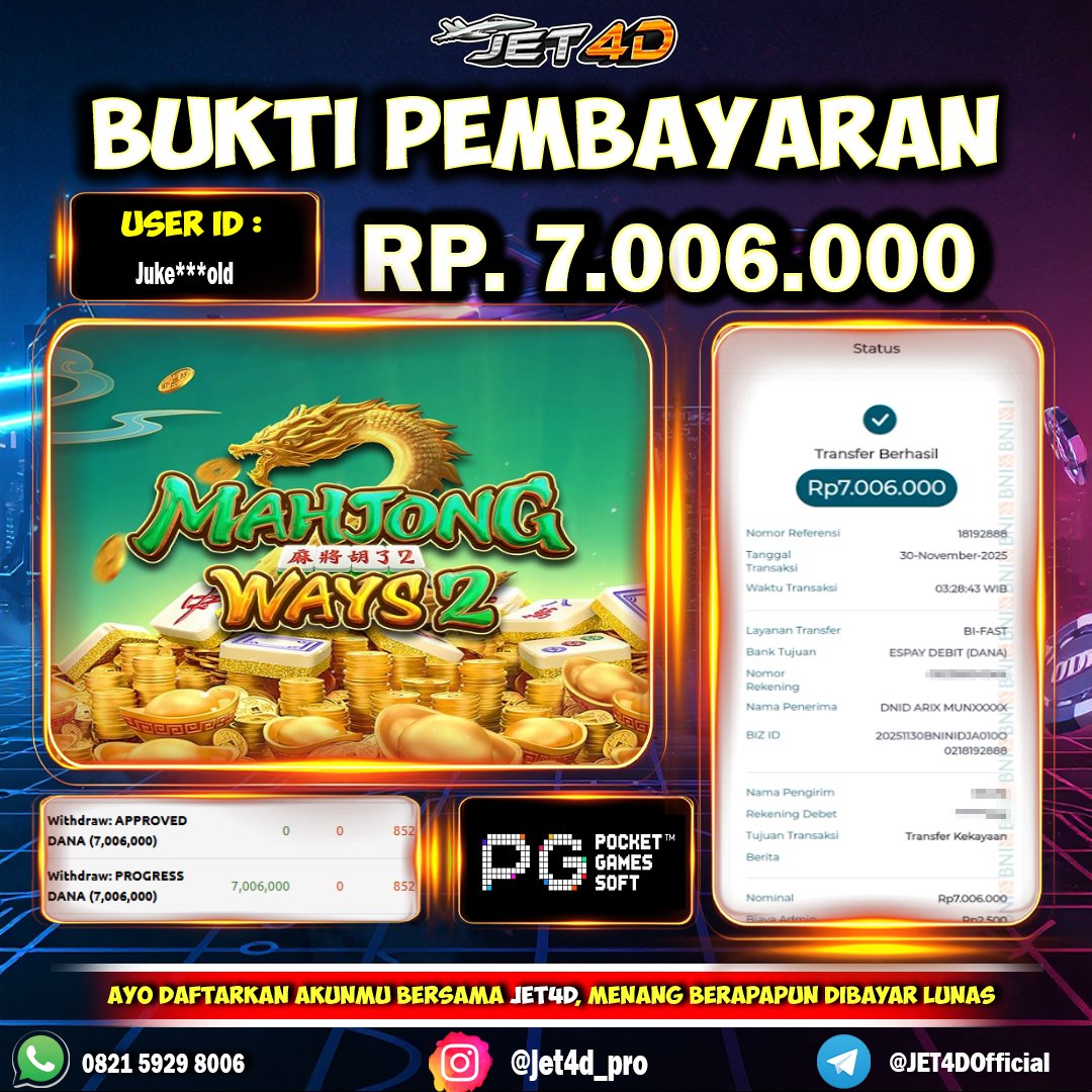 JET4D MAHJONG TERGACOR HANYA ADA DISINI Selamat Kepada Member Setia Atas Withdraw Rp 7.006.000 Hari ini. List member yang sebelumnya mendapatkan withdraw besar bisa cek Disini dan di LINK ini.pelanyanan