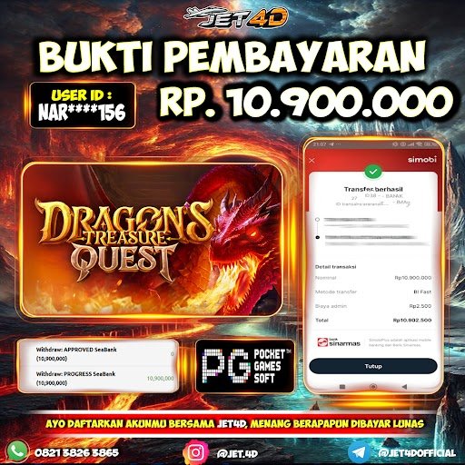 JET4D SLOT Dragons Treasure Quest Selamat Kepada Member Setia Atas Withdraw Rp 10.900.000Hari ini. List member yang sebelumnya mendapatkan withdraw besar bisa cek Disini dan di LINK ini.pelanyanan nonstop dan