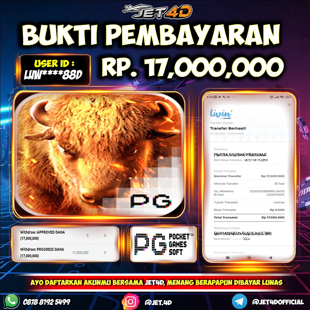 JET4D BUFFALO WIN Selamat Kepada Member Setia Atas Withdraw Rp. 17,000,000 Hari ini List member yang sebelumnya mendapatkan withdraw besar bisa cek Disini dan di LINK ini.pelanyanan nonstop dan profesional hanya