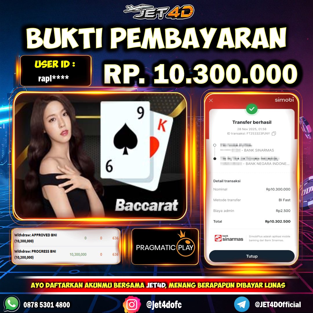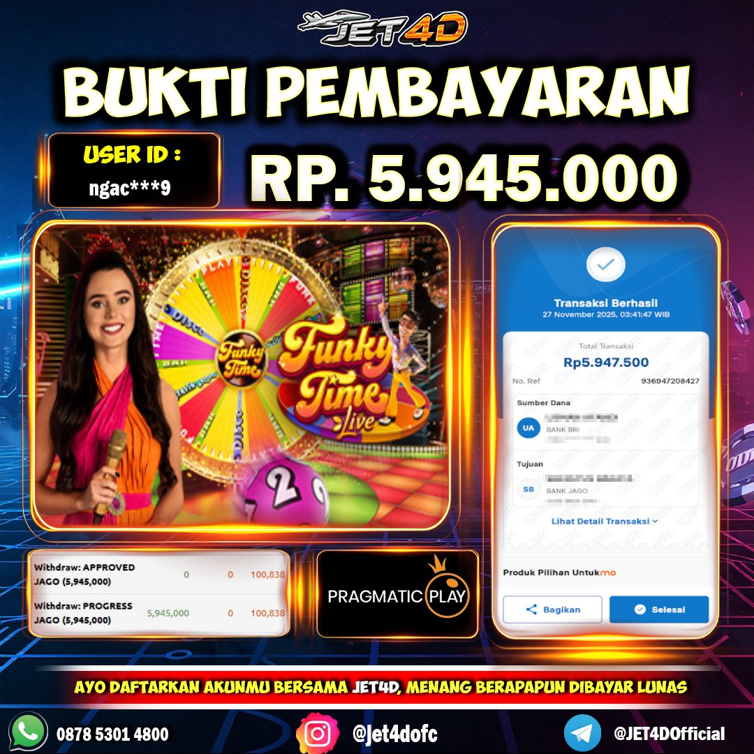 JET4D SENSASIONAL TANPA BATAS Selamat Kepada Member Setia Atas Withdraw Rp 5.945.000 Hari ini. List member yang sebelumnya mendapatkan withdraw besar bisa cek Disini dan di LINK ini.pelanyanan nonstop dan