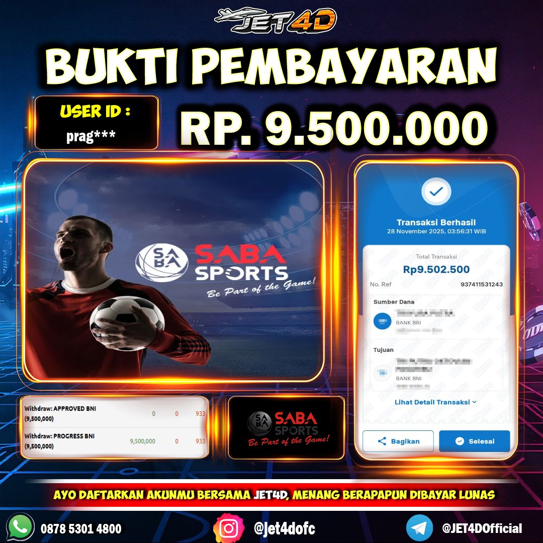 JET4D BANDAR PARLAY #1🔥Raih Kemenangan Berlipat Ganda Hanya Dengan 1 Tiket Parlay. Main Lebih Seru, Untung Lebih Besar! Selamat Kepada Member Setia Atas Withdraw Rp 9.500.000
