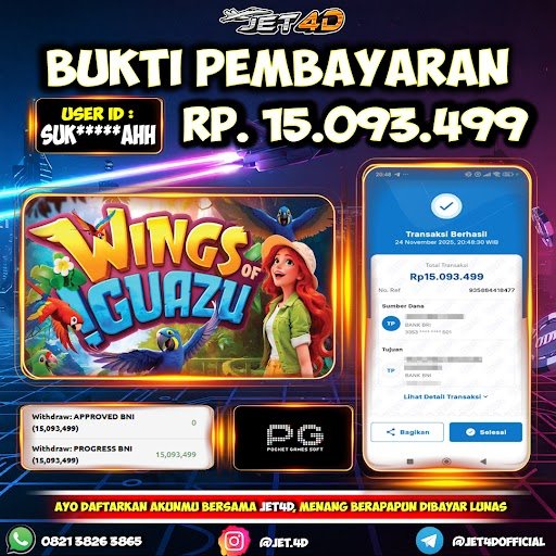JET4D SLOT Wings of Iguazu Selamat Kepada Member Setia Atas Withdraw Rp 15.093.499 Hari ini. JET4D Wings of Iguazu adalah permainan slot bertema alam liar yang
