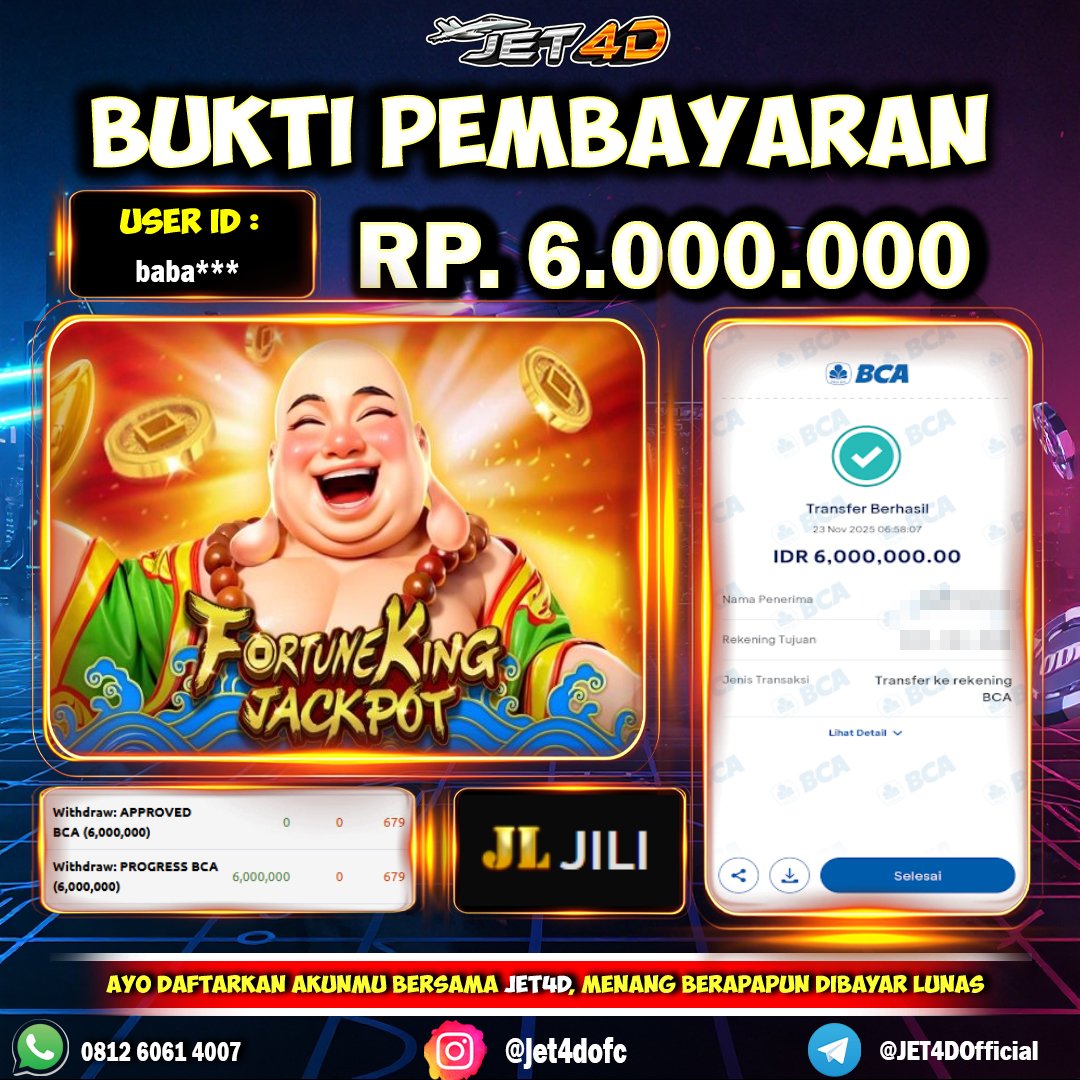 JET4D SEKALI TARIK, LANGSUNG CUAN Selamat Kepada Member Setia Atas Withdraw Rp 6.000.000 Hari ini. List member yang sebelumnya mendapatkan withdraw besar bisa cek Disini dan di LINK ini.pelanyanan nonstop