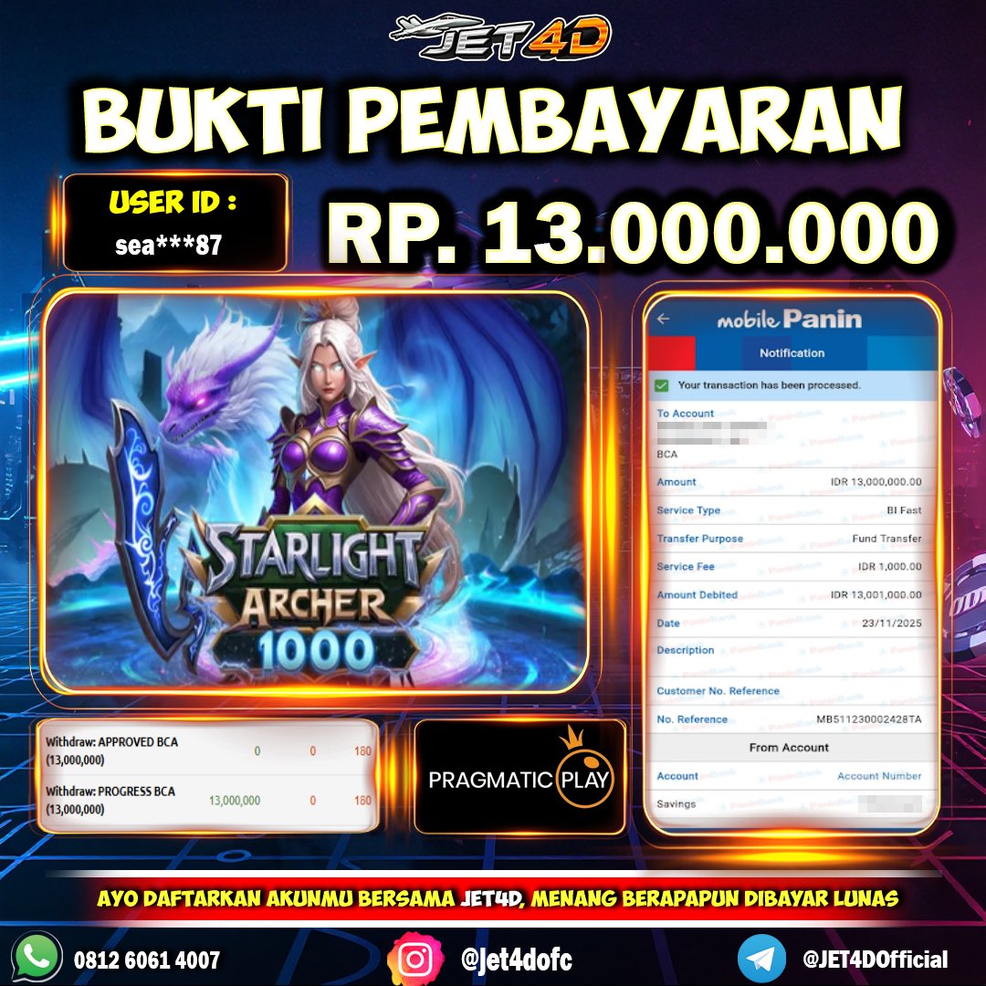 JET4D TEBAK CEPAT, MENANG CEPAT Selamat Kepada Member Setia Atas Withdraw Rp 8.000.000 Hari ini. List member yang sebelumnya mendapatkan withdraw besar bisa cek Disini dan di LINK ini.pelanyanan nonstop