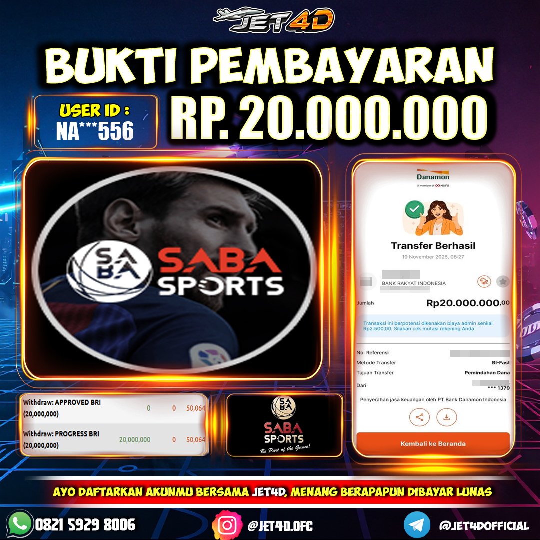 JET4D PILIHAN TEPAT PECINTA SPORTSBOOK Selamat Kepada Member Setia Atas Withdraw Rp 20.000.000 Hari ini. List member yang sebelumnya mendapatkan withdraw besar bisa cek Disini dan di LINK ini.pelanyanan nonstop dan