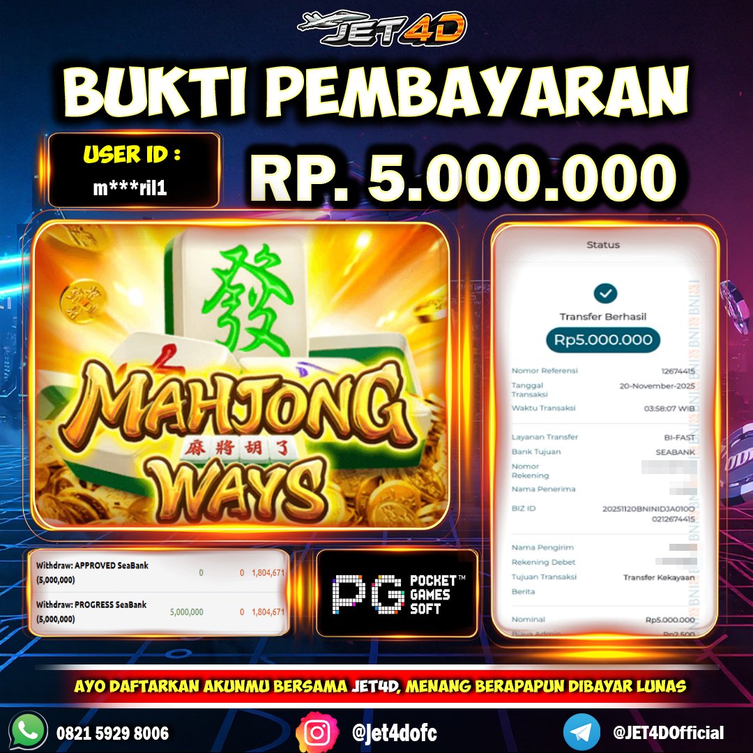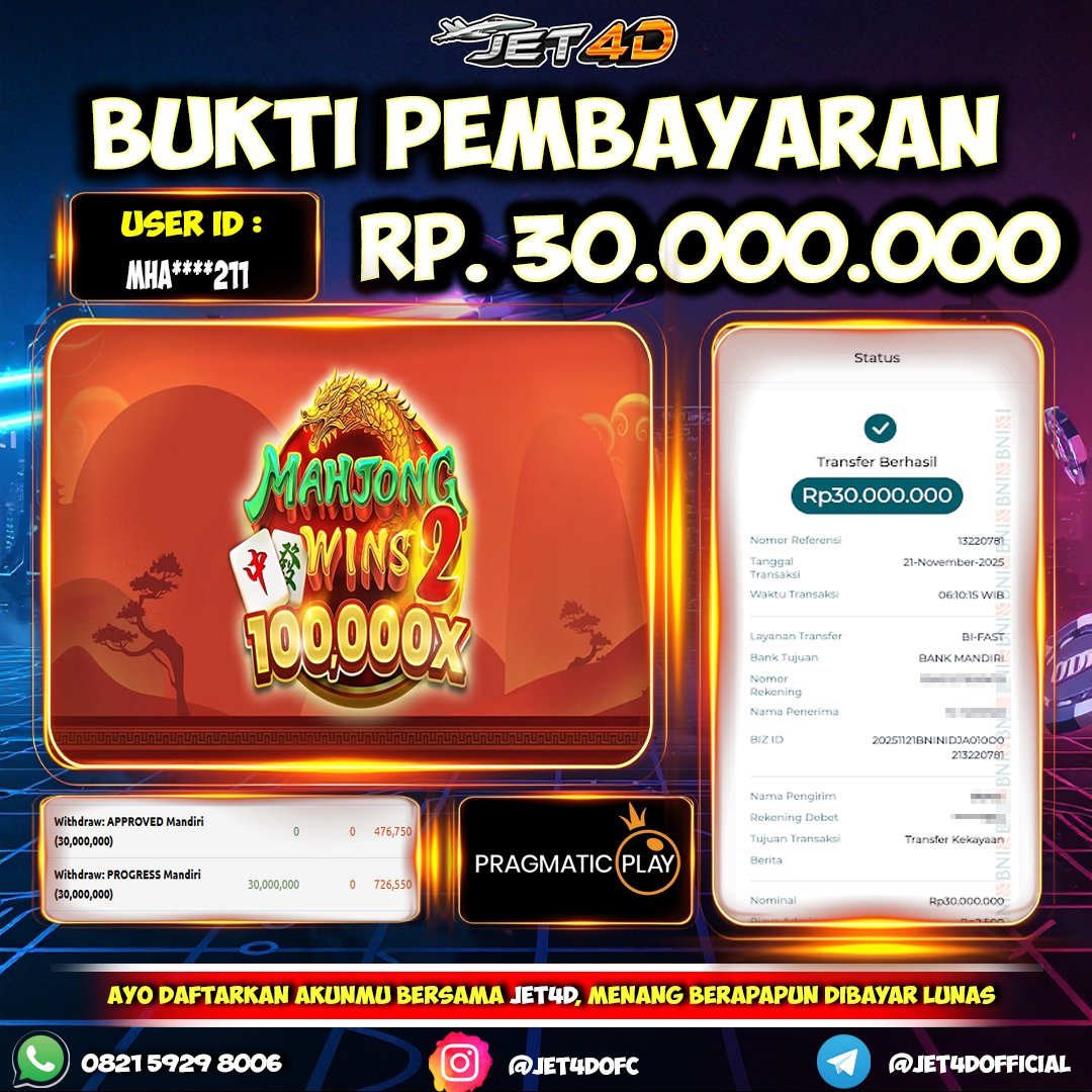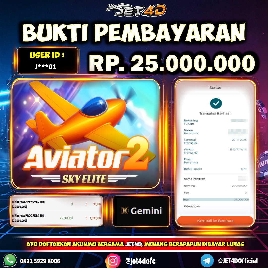 JET4D TERBANG LEBIH TINGGI, MENANG LEBIH BESAR Selamat Kepada Member Setia Atas Withdraw Rp 25.000.000 Hari ini. List member yang sebelumnya mendapatkan withdraw besar bisa cek Disini dan