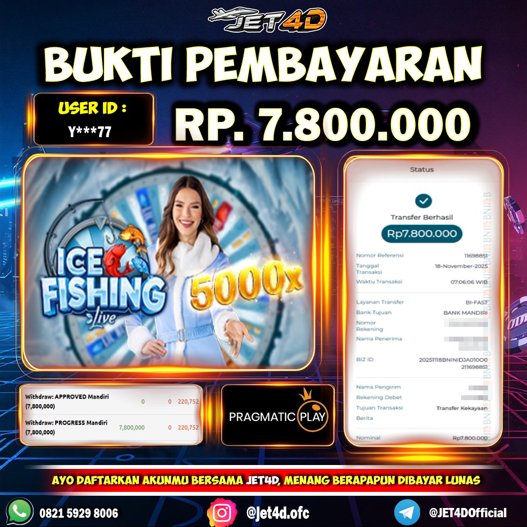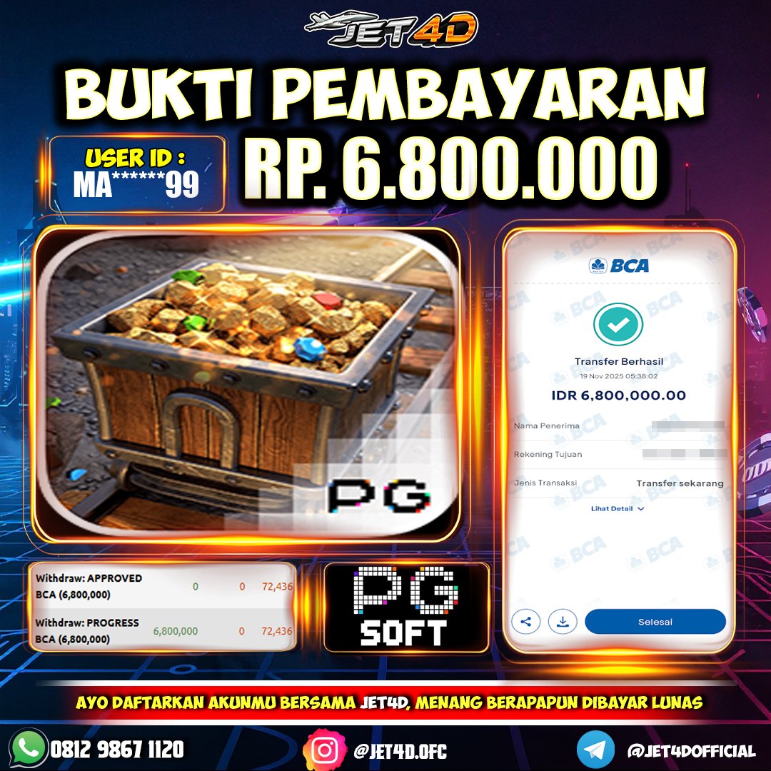 JET4D RAIH KEKAYAAN BERKILAU Selamat Kepada Member Setia Atas Withdraw Rp 6.800.000 Hari ini. List member yang sebelumnya mendapatkan withdraw besar bisa cek Disini dan di LINK ini.pelanyanan nonstop dan profesional