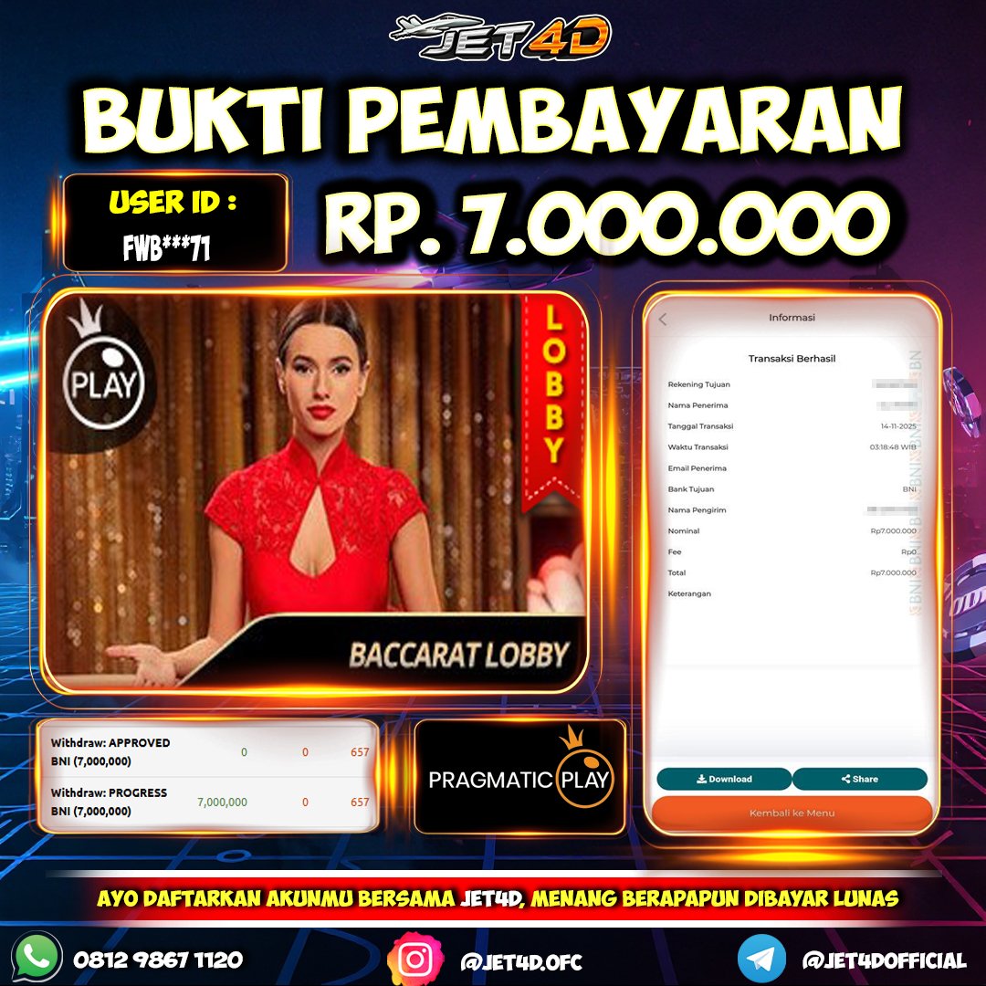 JET4D LIVE CASINO TERLENGKAP SE ASIA Selamat Kepada Member Setia Atas Withdraw Rp 7.000.000 Hari ini. List member yang sebelumnya mendapatkan withdraw besar bisa cek Disini dan di LINK ini.pelanyanan