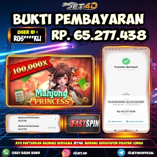JET4D Mahjong Princess Selamat Kepada Member Setia Atas Withdraw Rp 65.277.438 Hari ini. List member yang sebelumnya mendapatkan withdraw besar bisa cek Disini dan di LINK ini.pelanyanan nonstop dan profesional