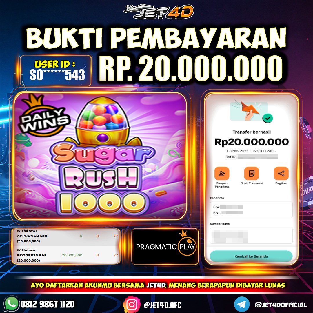JET4D CUAN MANIS DARI DUNIA PERMEN Selamat Kepada Member Setia Atas Withdraw Rp 21.000.000 Hari ini. List member yang sebelumnya mendapatkan withdraw besar bisa cek Disini dan di LINK ini.pelanyanan