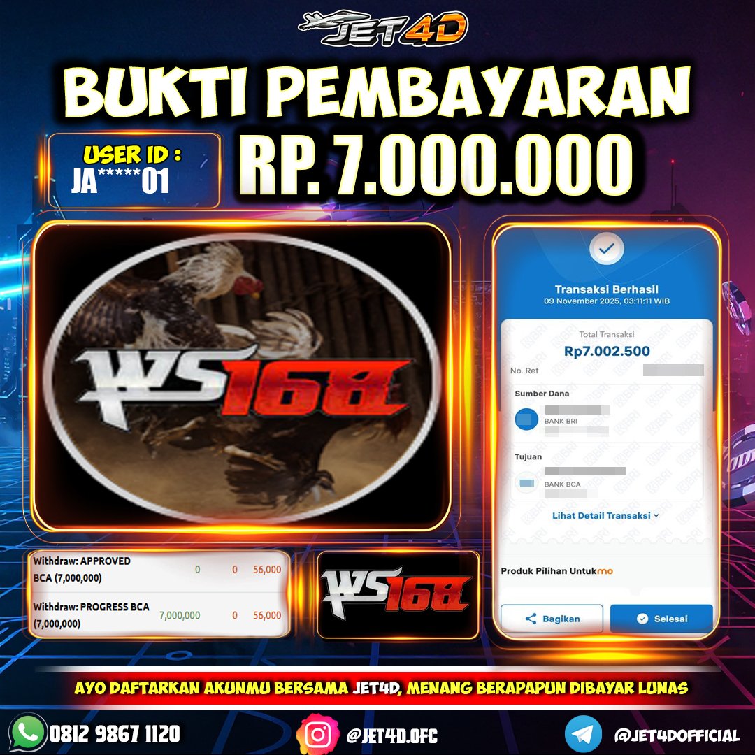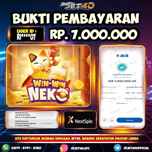 JET4D WIN WIN NEKO Selamat Kepada Member Setia Atas Withdraw Rp 7.000.000 Hari ini. List member yang sebelumnya mendapatkan withdraw besar bisa cek Disini dan di LINK ini.pelanyanan nonstop dan profesional