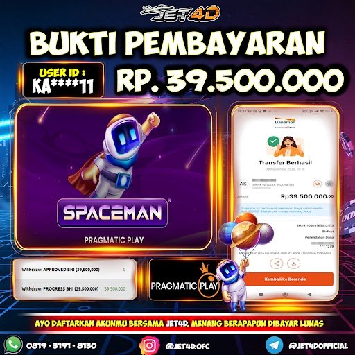 JET4D TERBANGKAN SENSANSI MAXWIN SPACEMAN Selamat Kepada Member Setia Atas Withdraw Rp 39.500.000 Hari ini. List member yang sebelumnya mendapatkan withdraw besar bisa cek Disini dan di LINK ini.pelanyanan nonstop