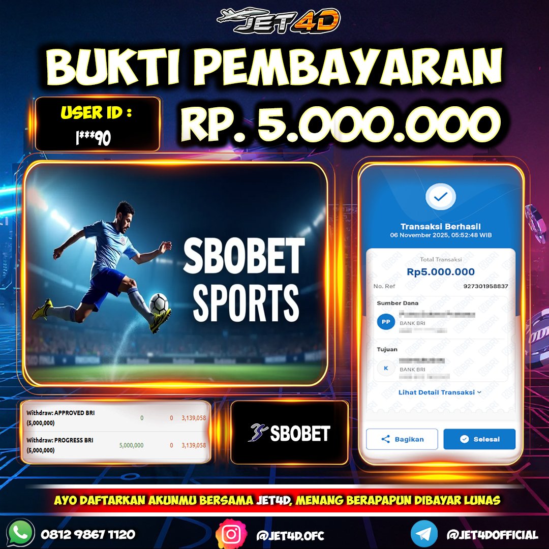 JET4D EVENT MIX PARLAY TERBESAR SE ASIA Selamat Kepada Member Setia Atas Withdraw Rp 5.000.000 Hari ini. List member yang sebelumnya mendapatkan withdraw besar bisa cek Disini dan