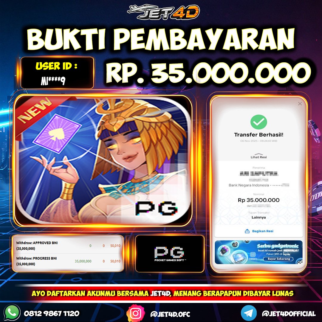 JET4D TEMUKAN HARTA RAJA MESIR DISINI Selamat Kepada Member Setia Atas Withdraw Rp 35.000.000 Hari ini. List member yang sebelumnya mendapatkan withdraw besar bisa cek Disini dan di LINK ini.pelanyanan