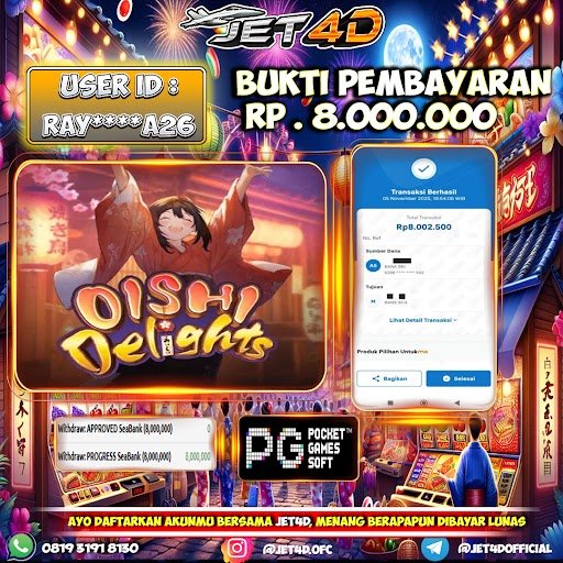 JET4D OSHI DELIGHTS Selamat Kepada Member Setia Atas Withdraw Rp 8.000.000 Hari ini. List member yang sebelumnya mendapatkan withdraw besar bisa cek Disini dan di LINK ini.pelanyanan nonstop dan profesional