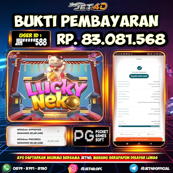 JET4D KUCING EMAS Selamat Kepada Member Setia Atas Withdraw Rp 83.081.568 Hari ini. List member yang sebelumnya mendapatkan withdraw besar bisa cek Disini dan di LINK ini.pelanyanan nonstop dan profesional hanya