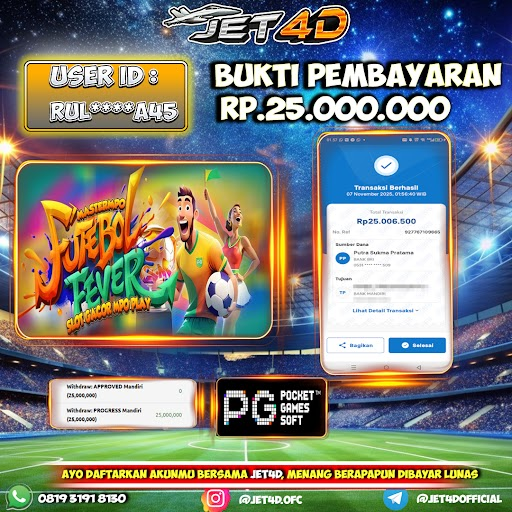 JET4D FUTEBOL FEVER Selamat Kepada Member Setia Atas Withdraw Rp 25.000.000 Hari ini. List member yang sebelumnya mendapatkan withdraw besar bisa cek Disini dan di LINK ini.pelanyanan nonstop dan profesional