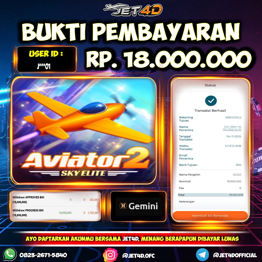 JET4D TERBANG TINGGI CUAN PASTI Selamat Kepada Member Setia Atas Withdraw Rp 18.000.000 Hari ini. List member yang sebelumnya mendapatkan withdraw besar bisa cek Disini dan di LINK ini.pelanyanan nonstop