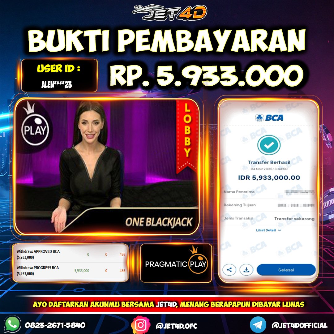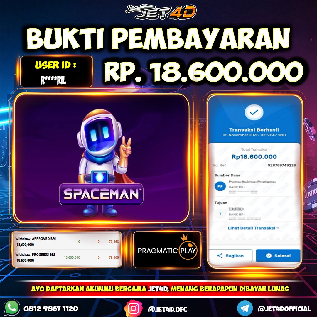 JET4D CUAN KILAT BERSAMA SPACEMAN Selamat Kepada Member Setia Atas Withdraw Rp 18.600.000 Hari ini. List member yang sebelumnya mendapatkan withdraw besar bisa cek Disini dan di LINK ini.pelanyanan nonstop