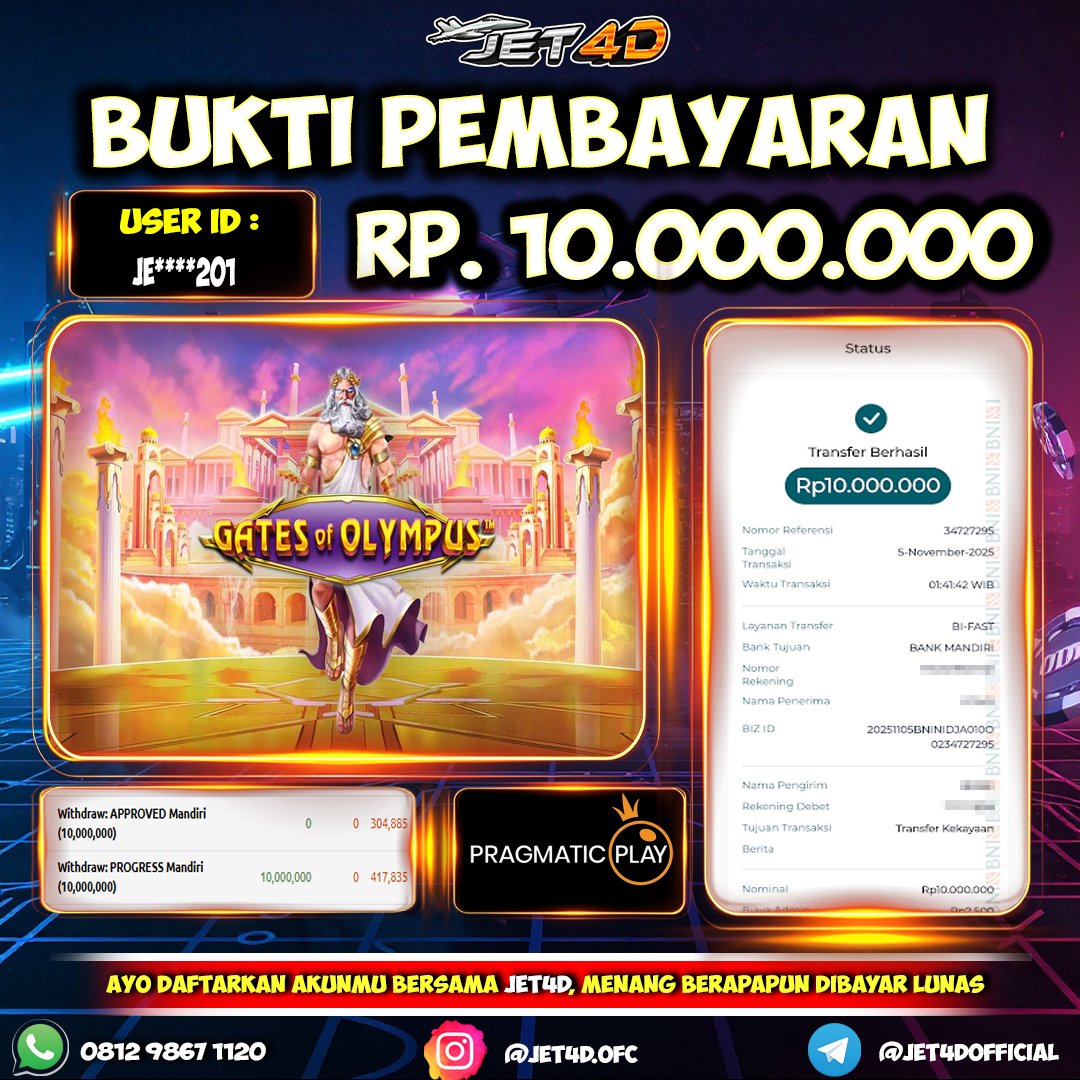 JET4D SAMBARAN ZEUS AUTO WEDE Selamat Kepada Member Setia Atas Withdraw Rp 10.000.000 Hari ini. List member yang sebelumnya mendapatkan withdraw besar bisa cek Disini dan di LINK ini.pelanyanan nonstop