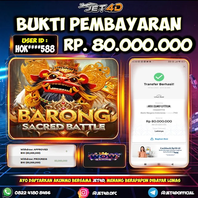 JET4D MENANGKAN BARONG SACRED BATTLE Selamat Kepada Member Setia Atas Withdraw Rp 80.000.000 Hari ini. Barong Sacred Battle adalah permainan slot online bertema mitologi dan budaya