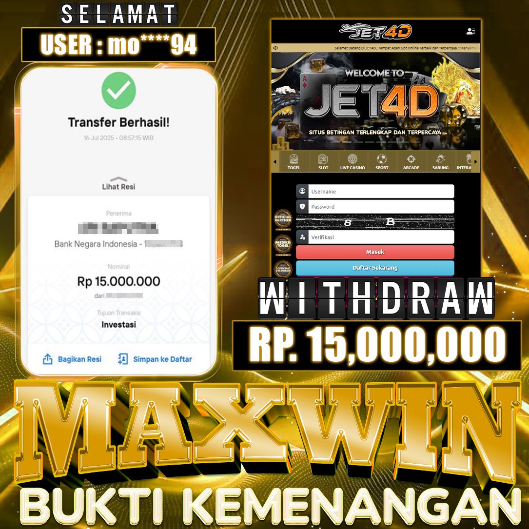 JET4D CLAIM BONUS 50% PASTI CUAN Selamat Kepada Member Setia Atas Withdraw Rp 15.000.000 Hari ini. List member yang sebelumnya mendapatkan withdraw besar bisa cek Disini dan di LINK ini.pelanyanan nonstop