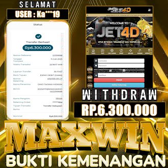 JET4D BUKAN JANJI TAPI NYATA MEMBER MAXWIN Selamat Kepada Member Setia Atas Withdraw Rp 6.300.000 Hari ini. List member yang sebelumnya mendapatkan withdraw besar bisa cek Disini dan di LINK ini.pelanyanan