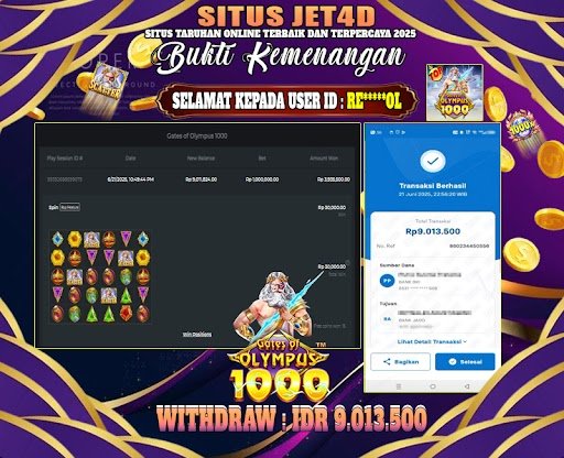 JET4D TEMPAT CARI CUAN MUDAH RAIH JP Selamat Kepada Member Setia Atas Withdraw Rp 9.013.000 Hari ini. List member yang sebelumnya mendapatkan withdraw besar bisa cek Disini dan