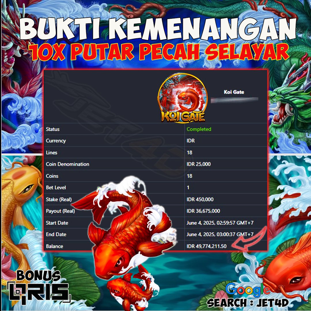 JET4D MENANG BERAPAPUN DIBAYAR LUNAS Selamat Kepada Member Setia Atas Withdraw Rp 49.000.000 Hari ini. List member yang sebelumnya mendapatkan withdraw besar bisa cek Disini dan di LINK ini.pelanyanan nonstop dan