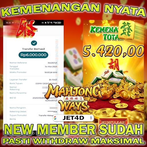 Jet4d Bermain Tanpa Pola Di Jamin Maxwin Kepada Member Setia Atas Withdraw Rp 5.420.000 Hari ini. List member yang sebelumnya mendapatkan withdraw besar bisa cek Disini dan di LINK ini.pelanyanan