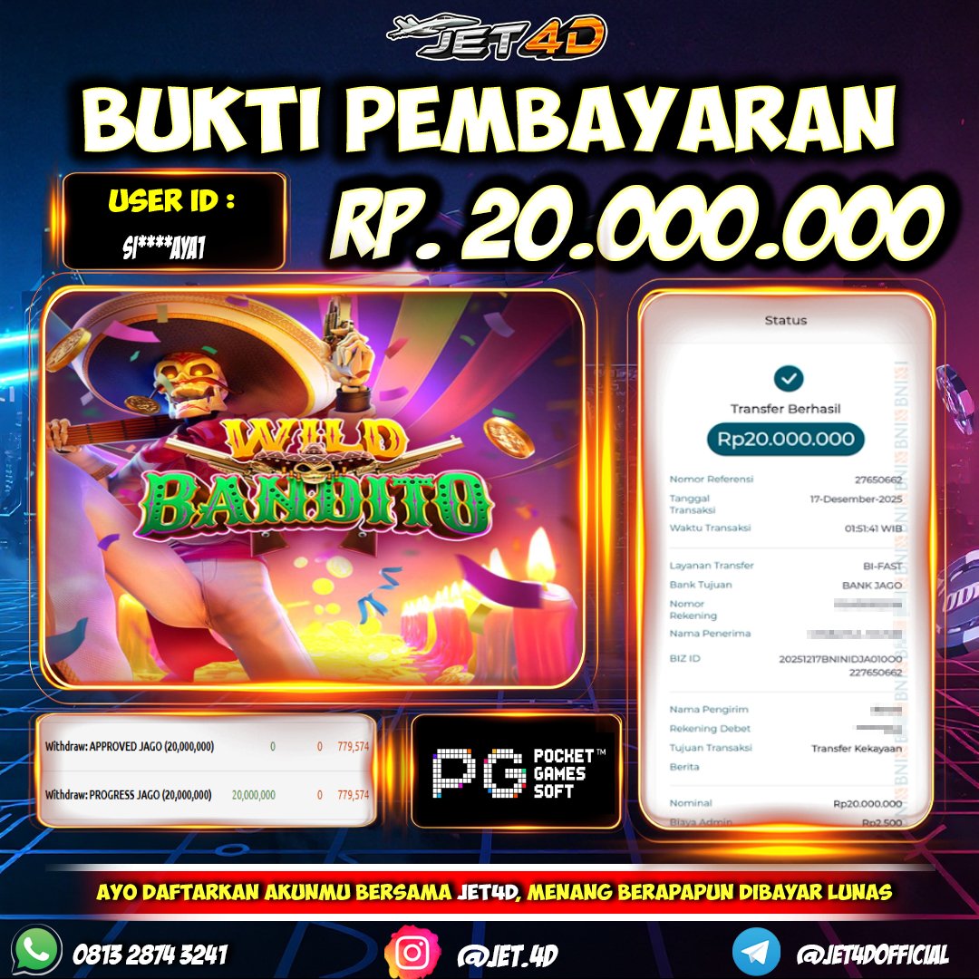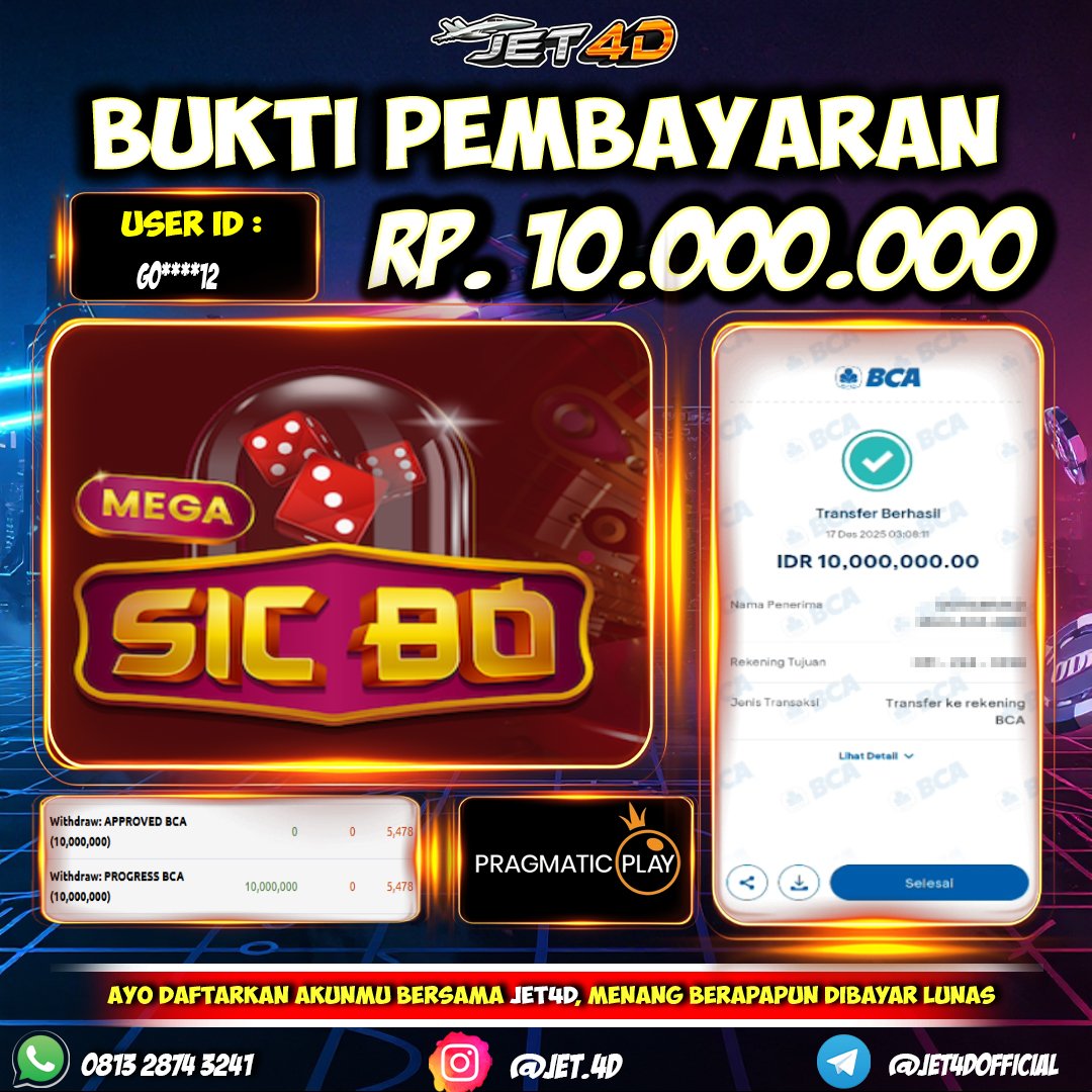 JET4D DEPO SEKALI WEDE BERKALI KALI Selamat Kepada Member Setia Atas Withdraw Rp 20.000.000 Hari ini. List member yang sebelumnya mendapatkan withdraw besar bisa cek Disini dan di LINK ini.pelanyanan