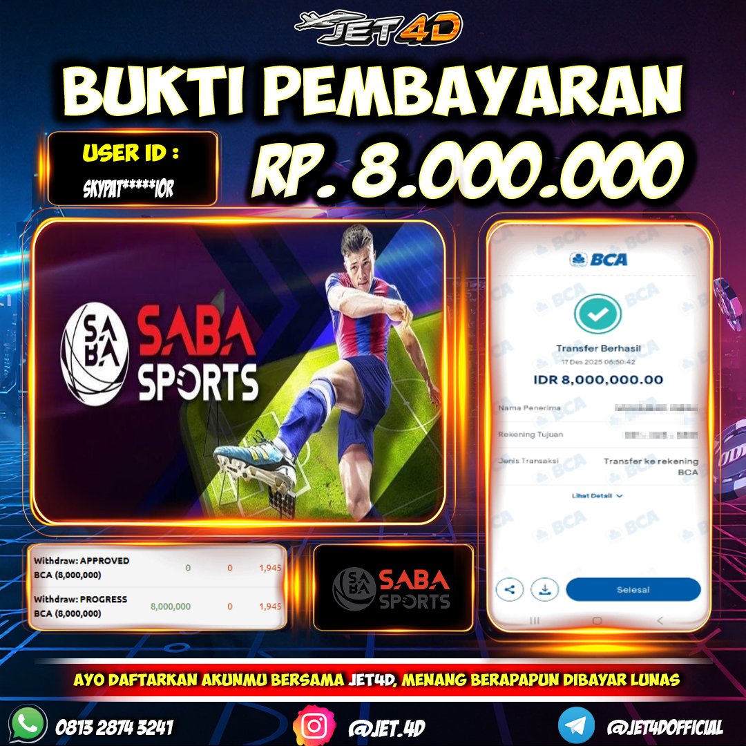 JET4D BANDAR PARLAY #1🔥Raih Kemenangan Berlipat Ganda Hanya Dengan 1 Tiket Parlay. Main Lebih Seru, Untung Lebih Besar! Selamat Kepada Member Setia Atas Withdraw Rp 8.000.000