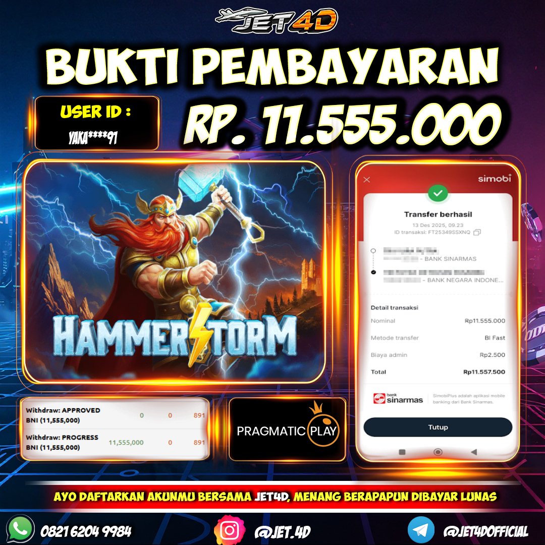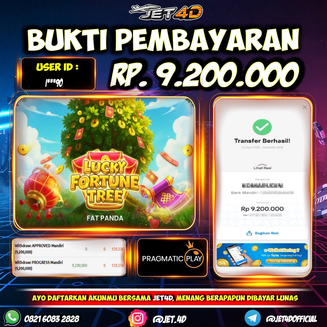 JET4D KASIH BUKTI BUKAN JANJI Selamat Kepada Member Setia Atas Withdraw Rp 9.200.000 Hari ini. List member yang sebelumnya mendapatkan withdraw besar bisa cek Disini dan di LINK ini.pelanyanan nonstop