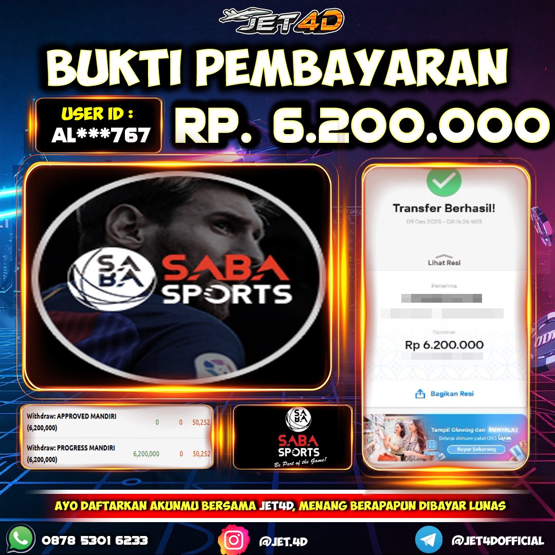 JET4D SENSASIONAL TANPA BATAS Selamat Kepada Member Setia Atas Withdraw Rp 6.200.00 Hari ini. List member yang sebelumnya mendapatkan withdraw besar bisa cek Disini dan di LINK ini.pelanyanan nonstop dan