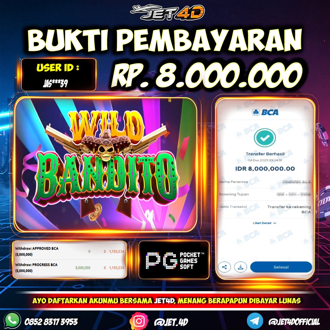 JET4D SENSASIONAL TANPA BATAS Selamat Kepada Member Setia Atas Withdraw Rp 8.000.000 Hari ini. List member yang sebelumnya mendapatkan withdraw besar bisa cek Disini dan di LINK ini.pelanyanan nonstop dan