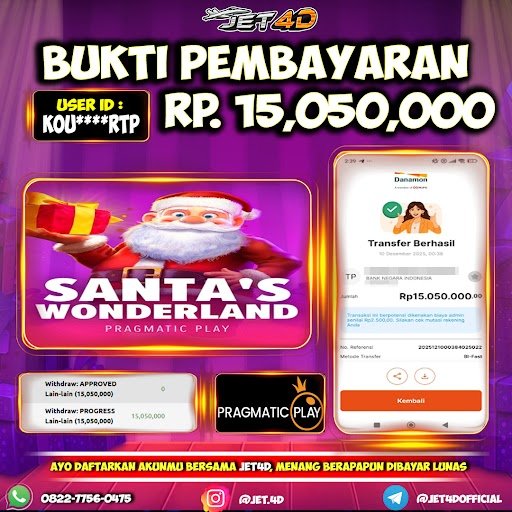 JET4D Santa’s Wonderland Selamat Kepada Member Setia Atas Withdraw Rp. 15.050.000 Hari ini List member yang sebelumnya mendapatkan withdraw besar bisa cek Disini dan di LINK ini.pelanyanan nonstop dan profesional hanya