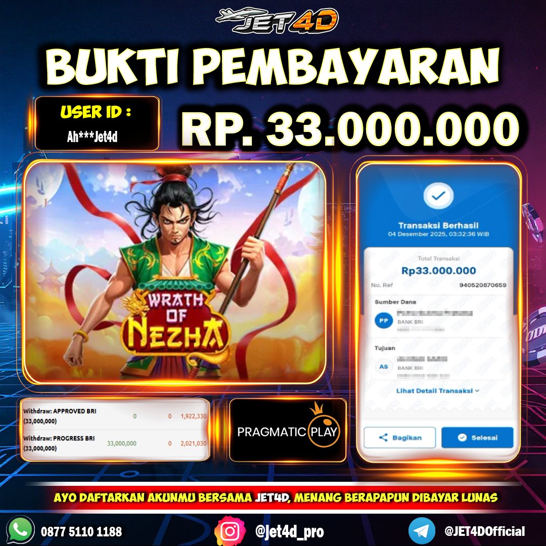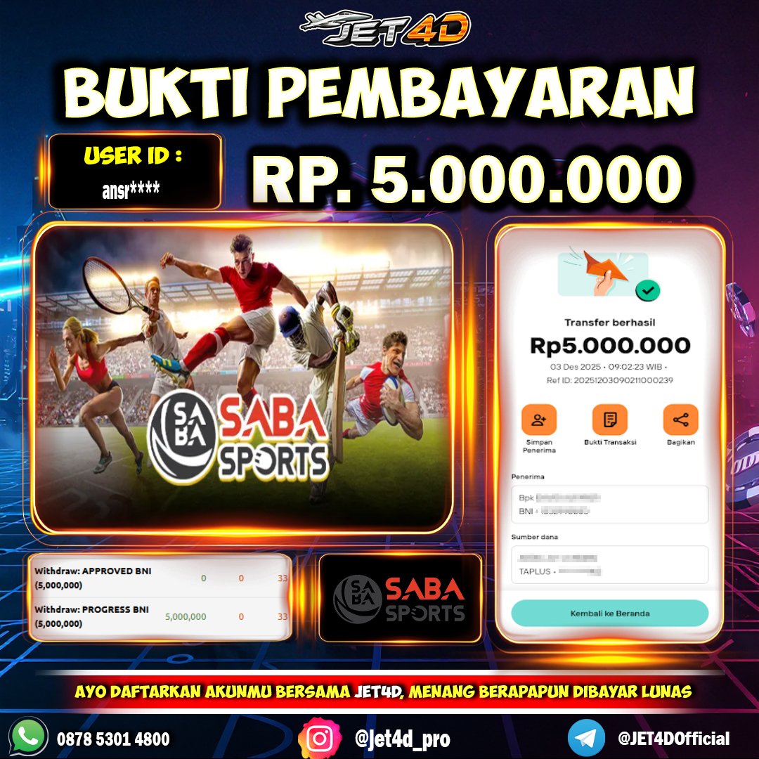 JET4D WEDE BERAPAPUN DIBAYAR LUNAS Selamat Kepada Member Setia Atas Withdraw Rp 9.600.000 Hari ini. List member yang sebelumnya mendapatkan withdraw besar bisa cek Disini dan di LINK ini.pelanyanan nonstop