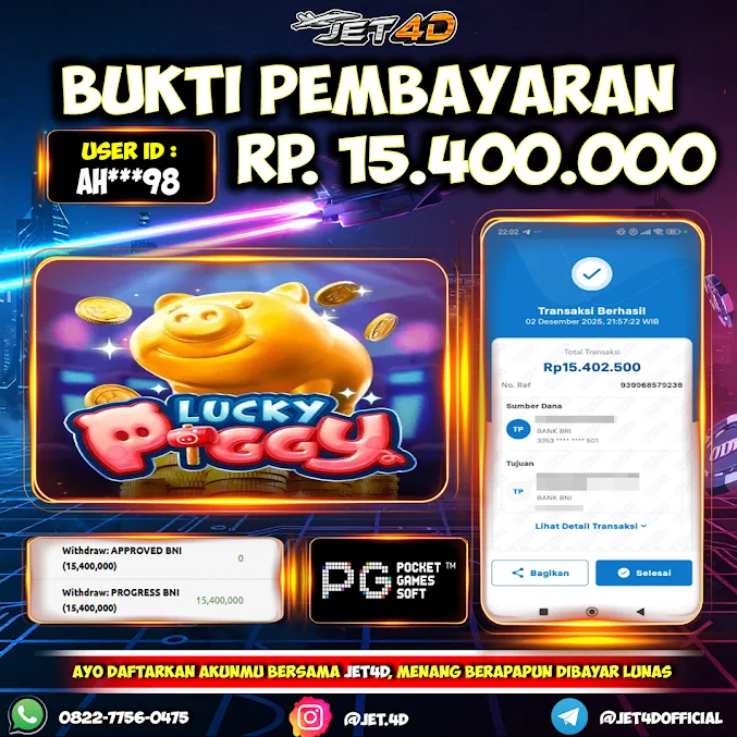 JET4D SLOT Lucky Piggy Selamat Kepada Member Setia Atas Withdraw Rp 15.400.000Hari ini. List member yang sebelumnya mendapatkan withdraw besar bisa cek Disini dan di LINK ini.pelanyanan nonstop dan profesional